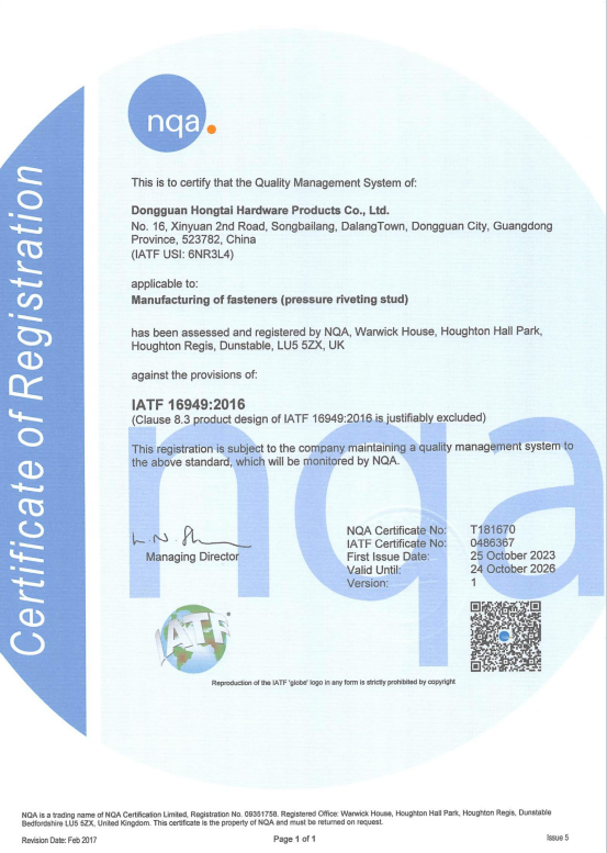 東莞市紅泰五金制品有限公司,公司占地六千多平方米,擁有五十多組螺絲機(jī)及六十臺(tái)自動(dòng)車(chē)床設(shè)備。是一家專(zhuān)業(yè)設(shè)計(jì)、生產(chǎn)ISO、DIN、GB、JIS、ANSI、BS及客戶(hù)指定特殊要求的高精密五金緊固件的制造企業(yè)。